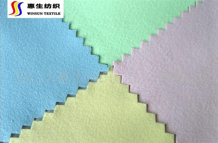 补充说明:一般桃皮绒是单面的,双面桃皮绒也有较好的市场价值,我司四个规格的双面桃皮绒!多用于服装和清洁。 梭织麂皮绒常规分类(纬向麂皮,经向麂皮)   纬向麂皮:主要是纬向原料为海岛纤维,是主要的绒毛来源(成本低开剪方便,所以价格较低)。
