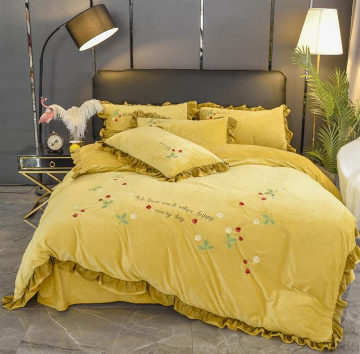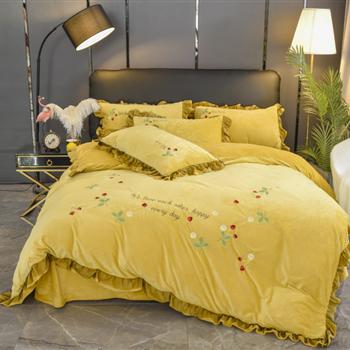 加厚水晶绒绣花四件套